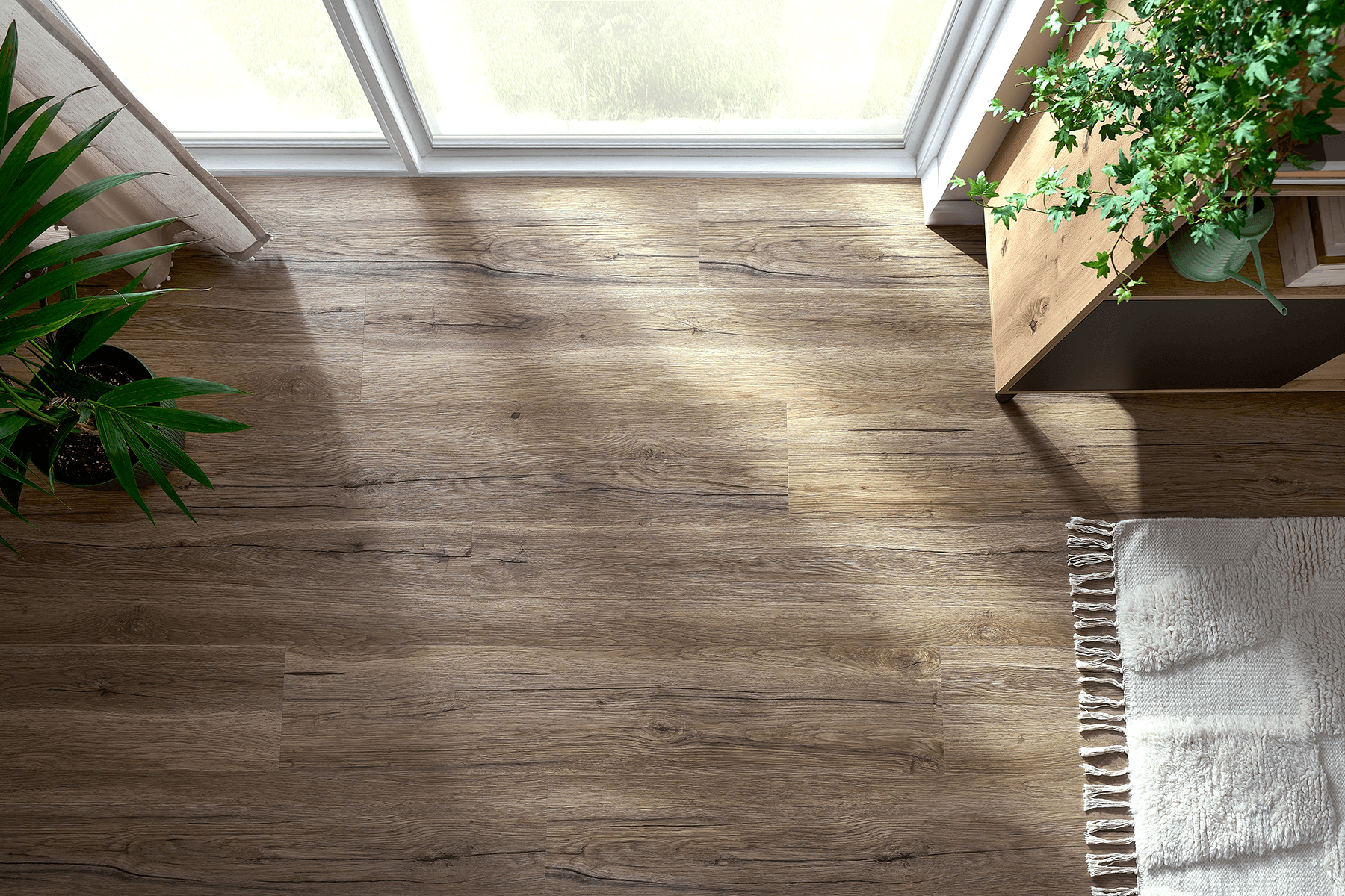 Klickvinyl mit integrierter Trittschallunterlage und Eichenholzoptik
